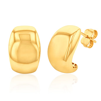 9ct Yellow Gold Diamond Cut Broad Half Hoop Earrings