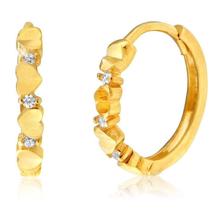9ct Yellow Gold Diamond Cut Cubic Zirconia Hoops