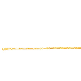 9ct Yellow Gold Diamond Cut Figaro Belcher 19cm Bracelet
