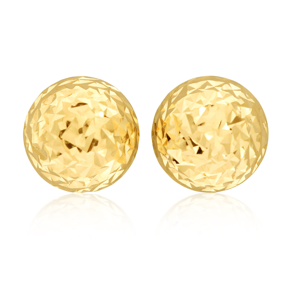 9ct Yellow Gold Diamond Cut Half Round 7mm Stud Earrings