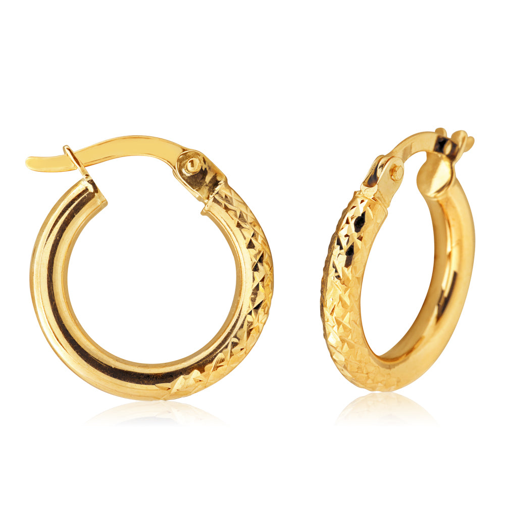 9ct Yellow Gold Diamond Cut Hoop earrings