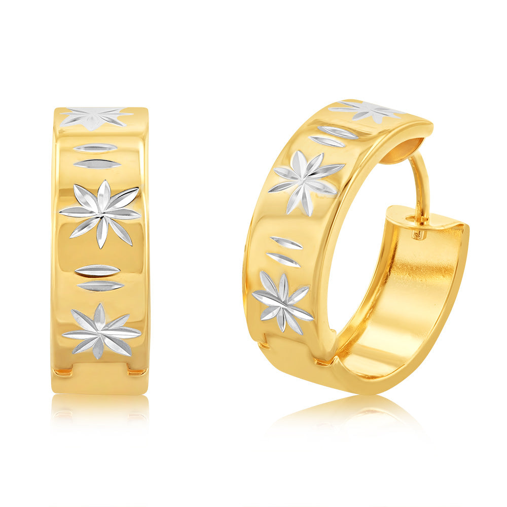 9ct Yellow Gold Diamond Cut Patterned Broad Hoop Earrings