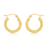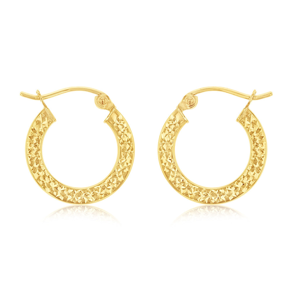 9ct Yellow Gold Diamond Cut Super Light 15mm Hoop Earring