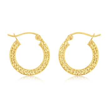 Embrace the simple life with these gorgeous 9ct Yellow Gold DIamond Cut Super Light 15mm Hoop Earrings. Its small yet dazzling design is perfect for everyday wear. These hoop earrings are proof that you can blend delicacy with durability. These easy-to-wear earrings are a great treat for yourself or a loved one.