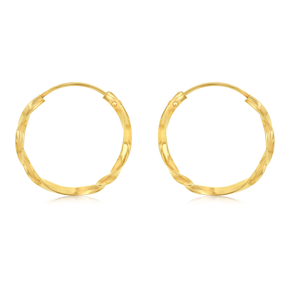 9ct Yellow Gold Diamond Cut Twisted 1.25 X 14mm Sleeper Hoop Earrings