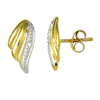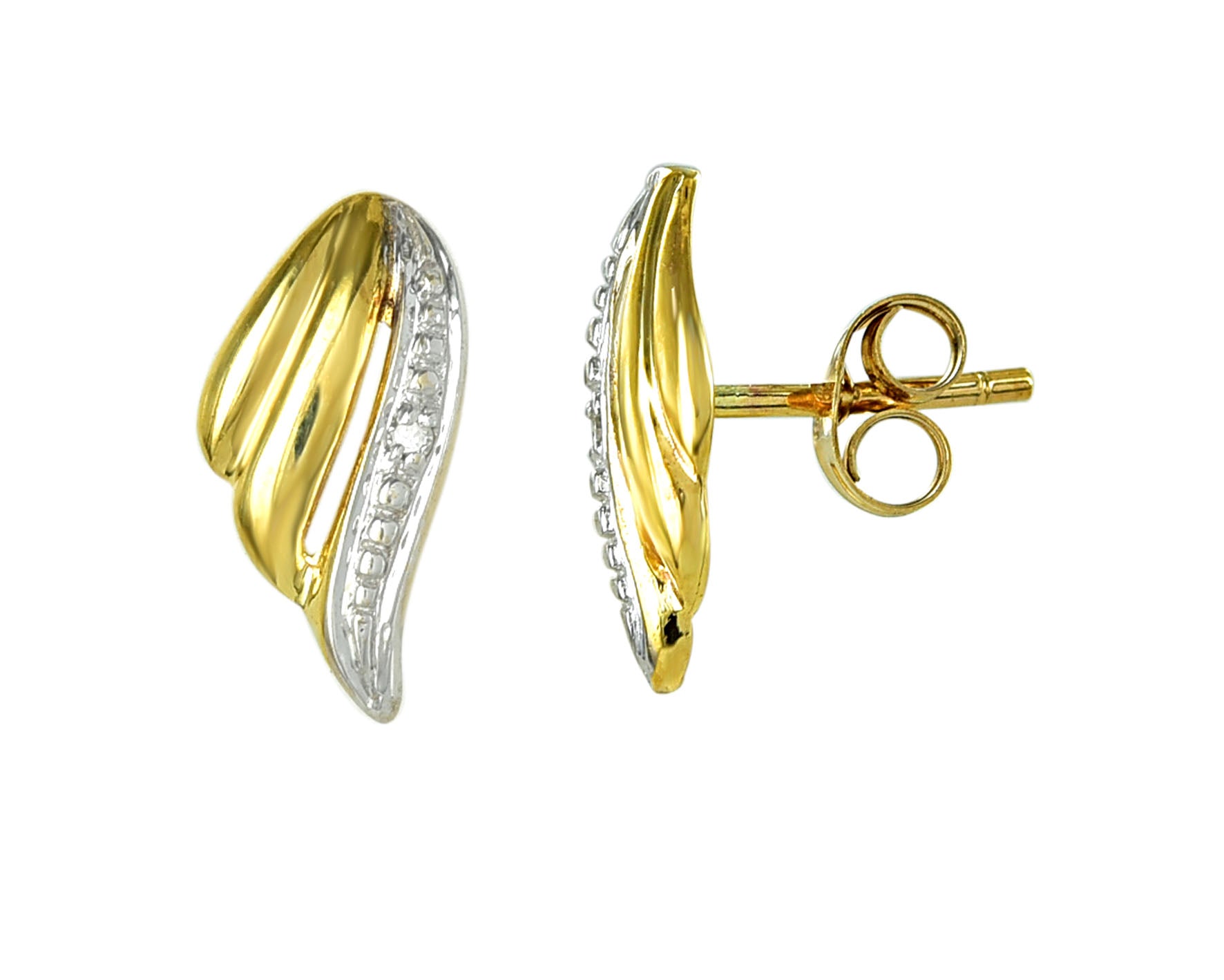 9ct Yellow Gold Diamond Flame Stud Earrings with 2 Brilliant Diamonds