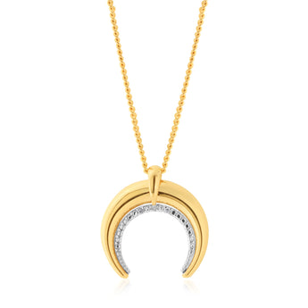 9ct Yellow Gold Diamond Half Moon Pendant with 2 Brilliant Cut Diamonds