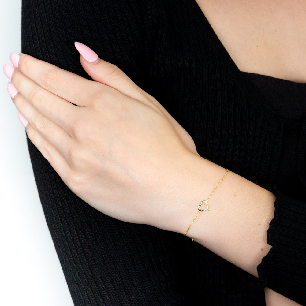 9ct Yellow Gold Diamond Heart Adjustable Bracelet