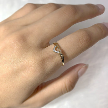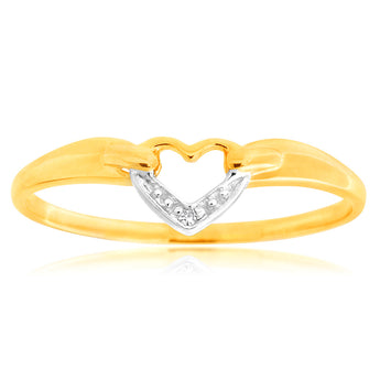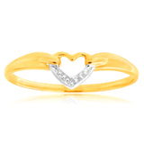 9ct Yellow Gold Diamond Heart Ring with 1 Brilliant Cut Diamond