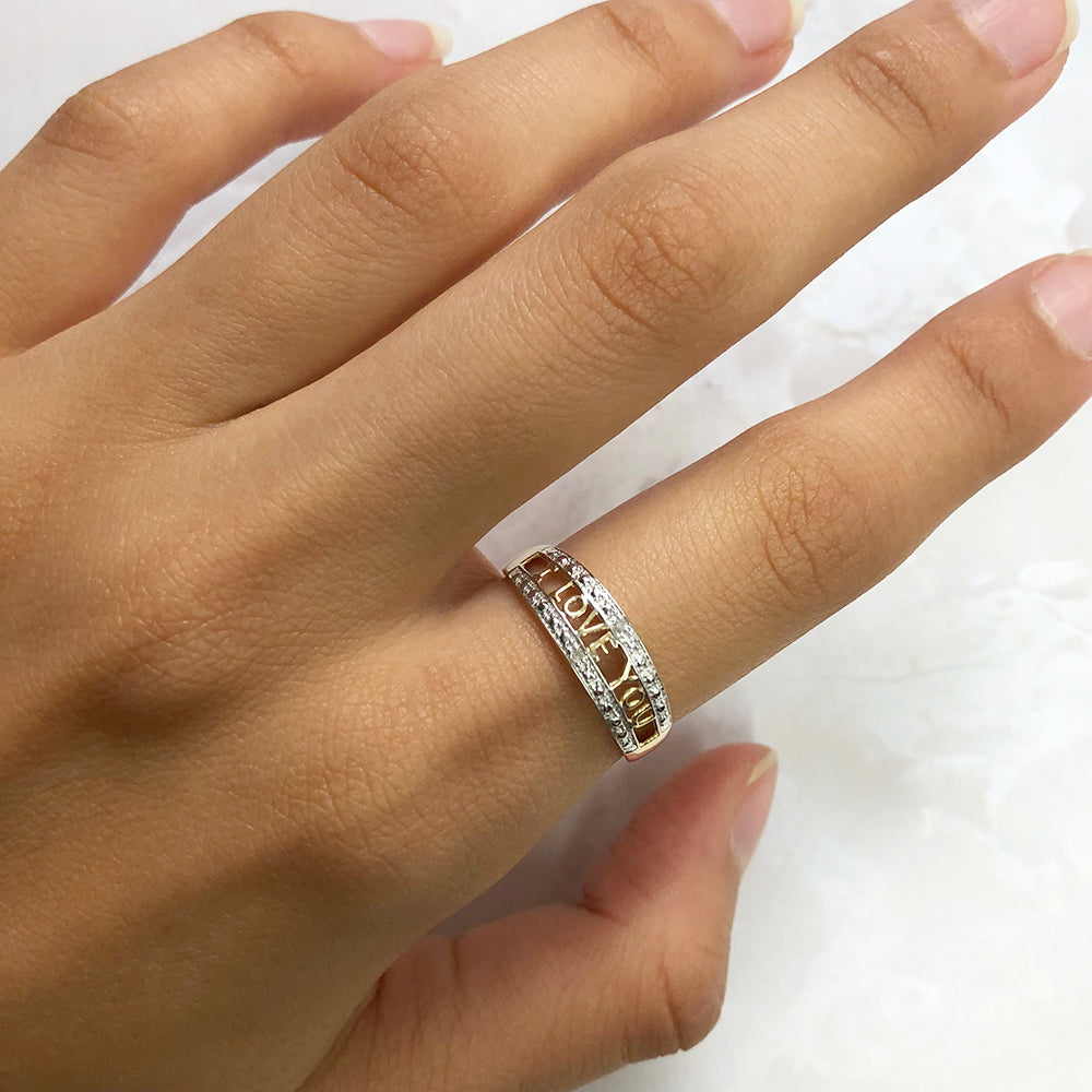 The ring is adorned with diamonds, adding a touch of brilliance to the message of love. The carefully chosen stones accentuate the sentiment, creating a piece that beautifully captures the essence of your feelings. The "I LOVE YOU" adds a personal and profound touch to the ring.