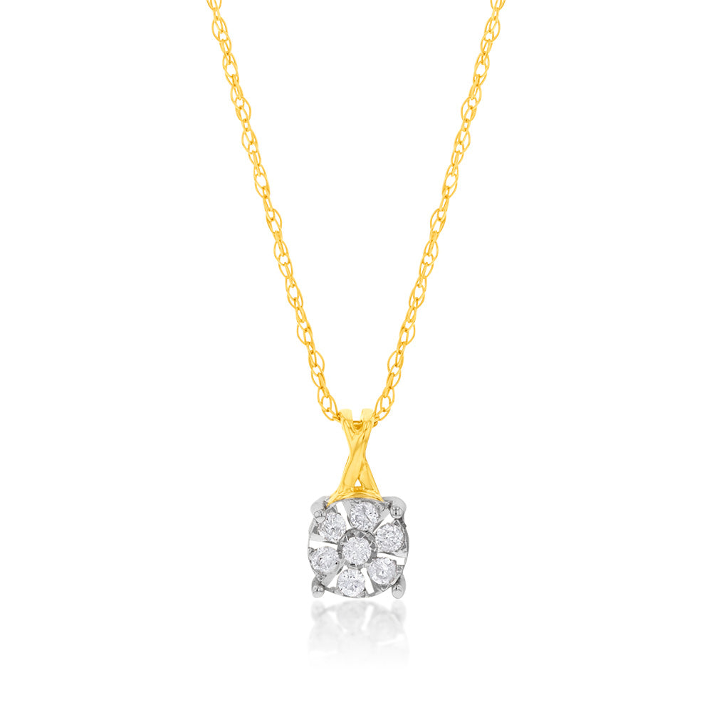 9ct Yellow Gold Diamond Pendant with 7 Brilliant Diamonds on 9ct Chain