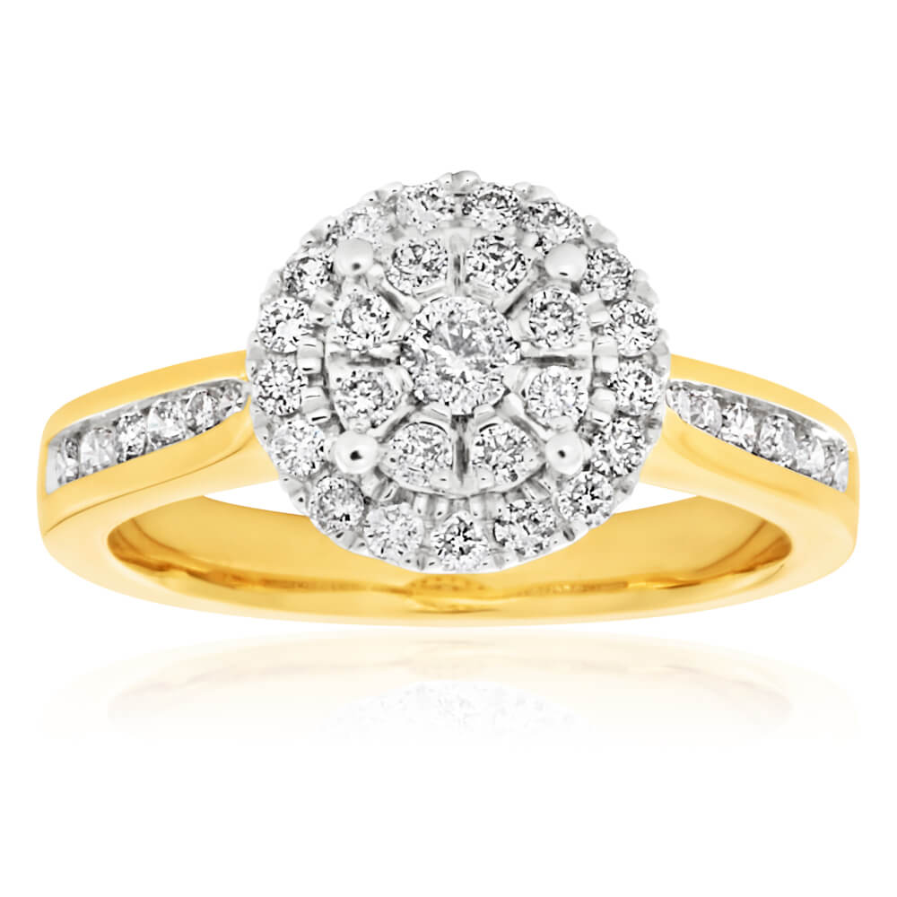 9ct Yellow Gold Diamond Ring Set with 1/2 Carat 38 Stunning Brilliant Diamonds