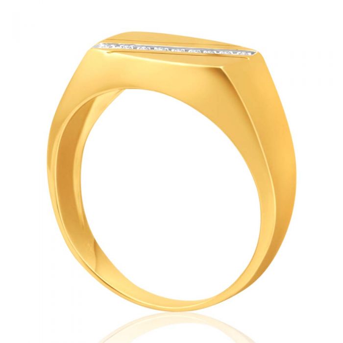 • Delicately crafted in yellow gold, this ring has a good shine and a polished texture that makes it look rich