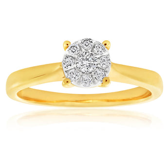 9ct Yellow Gold Diamond Ring Set with 9 Stunning Diamonds