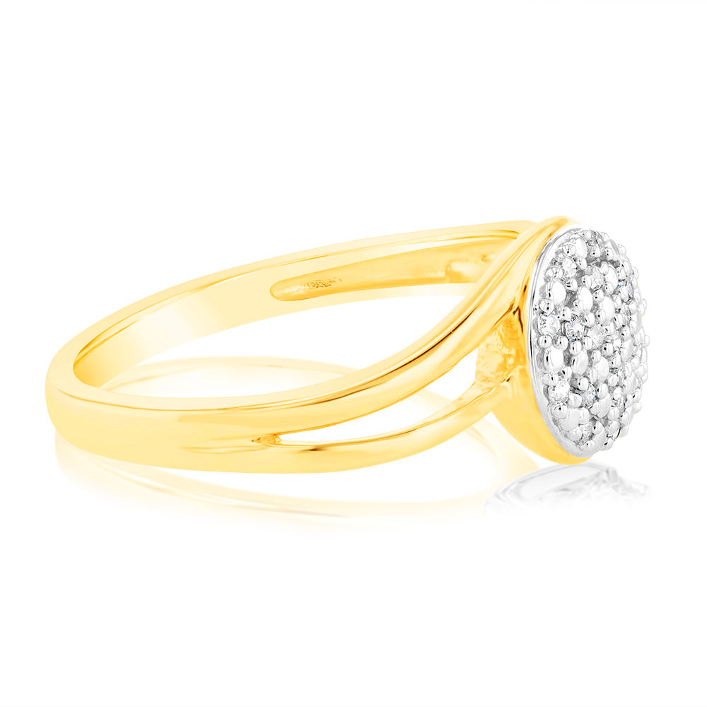 9ct Yellow Gold Diamond Ring with 19 Brilliant Cut Diamonds