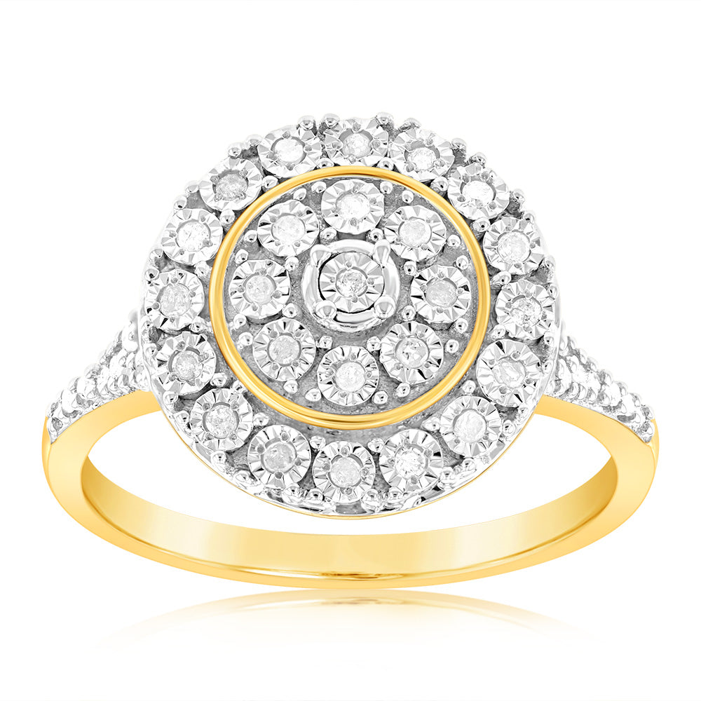 9ct Yellow Gold Diamond Ring With 35 Brilliant Cut Diamonds