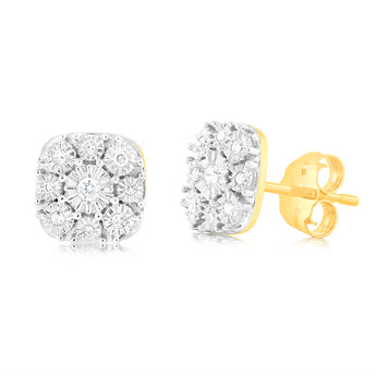9ct Yellow Gold Diamond Stud Earrings with 18 Brilliant Cut Diamonds