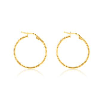 9ct Yellow Gold Double side Diamond Cut 20mm Hoop Earrings