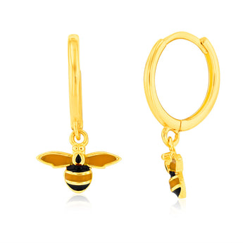 9ct Yellow Gold Enamel Bee on Sleeper Earrings
