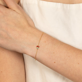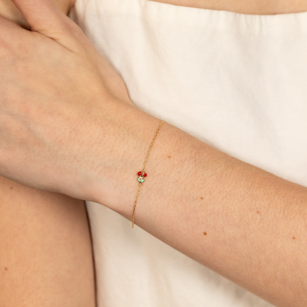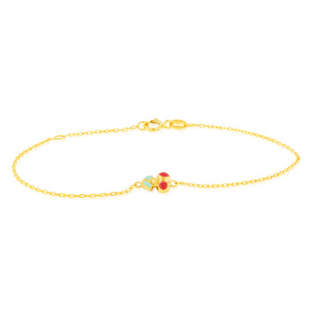 9ct Yellow Gold Enamel Pair of Cherries 19cm Bracelet