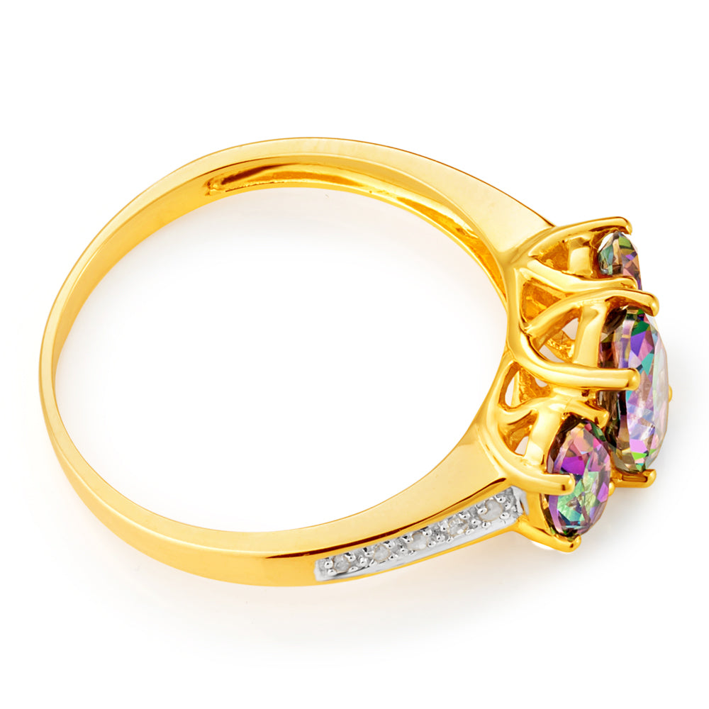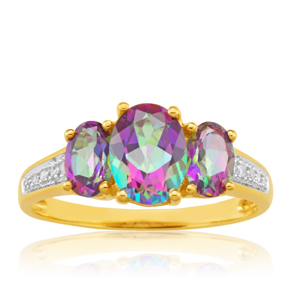 9ct Yellow Gold Enhanced Mystic Topaz Oval Cut & Diamond Trilogy Ring