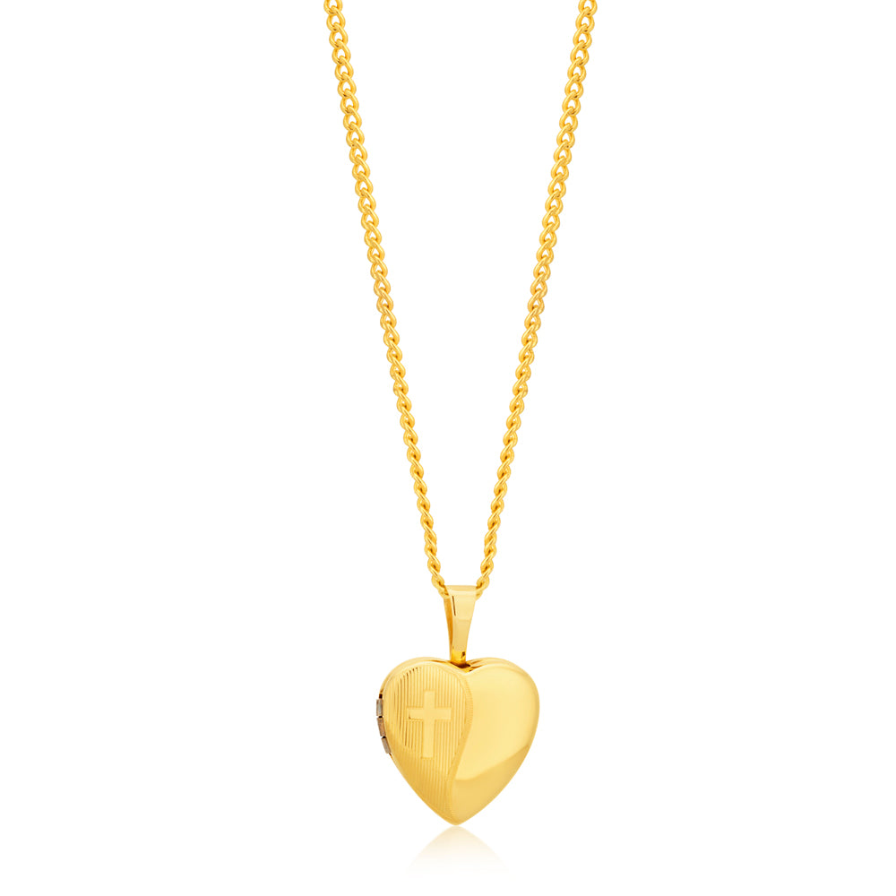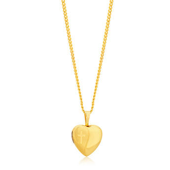 9ct Yellow Gold Etched Cross Heart Locket