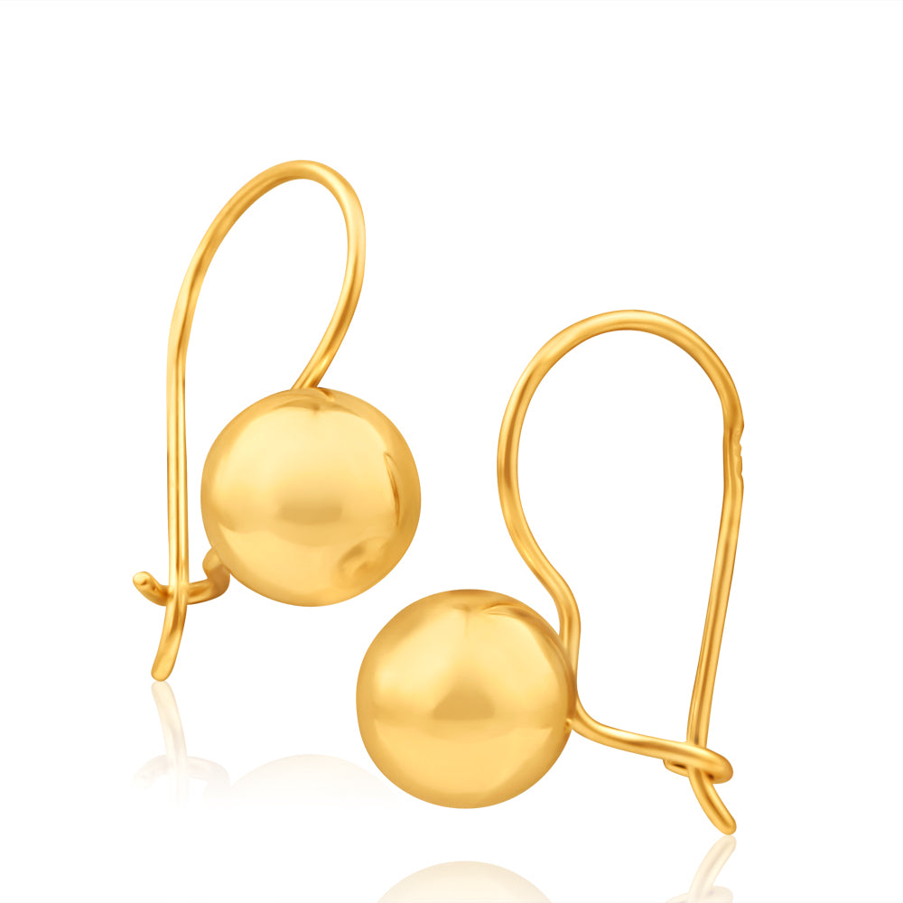 9ct Yellow Gold Euroball Drop Earrings