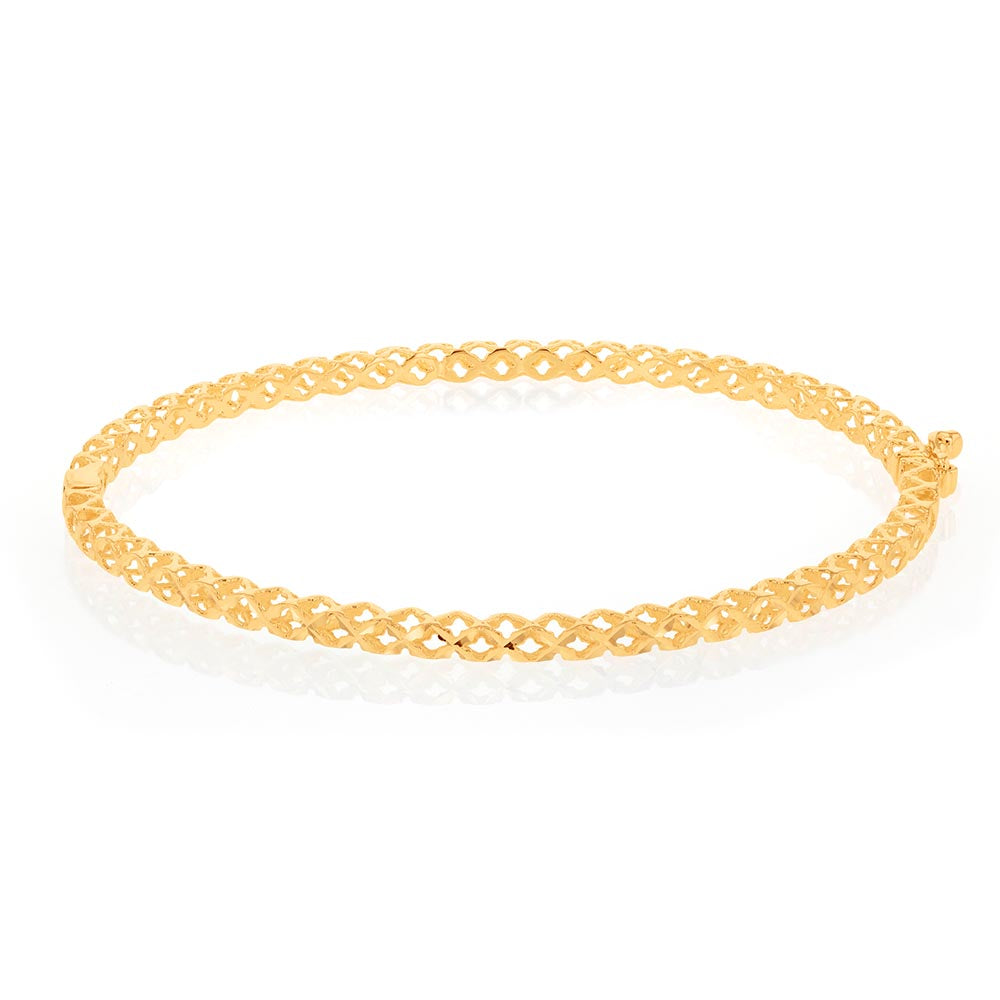 9ct Yellow Gold Fancy Diamond Cut 65mm Bangle