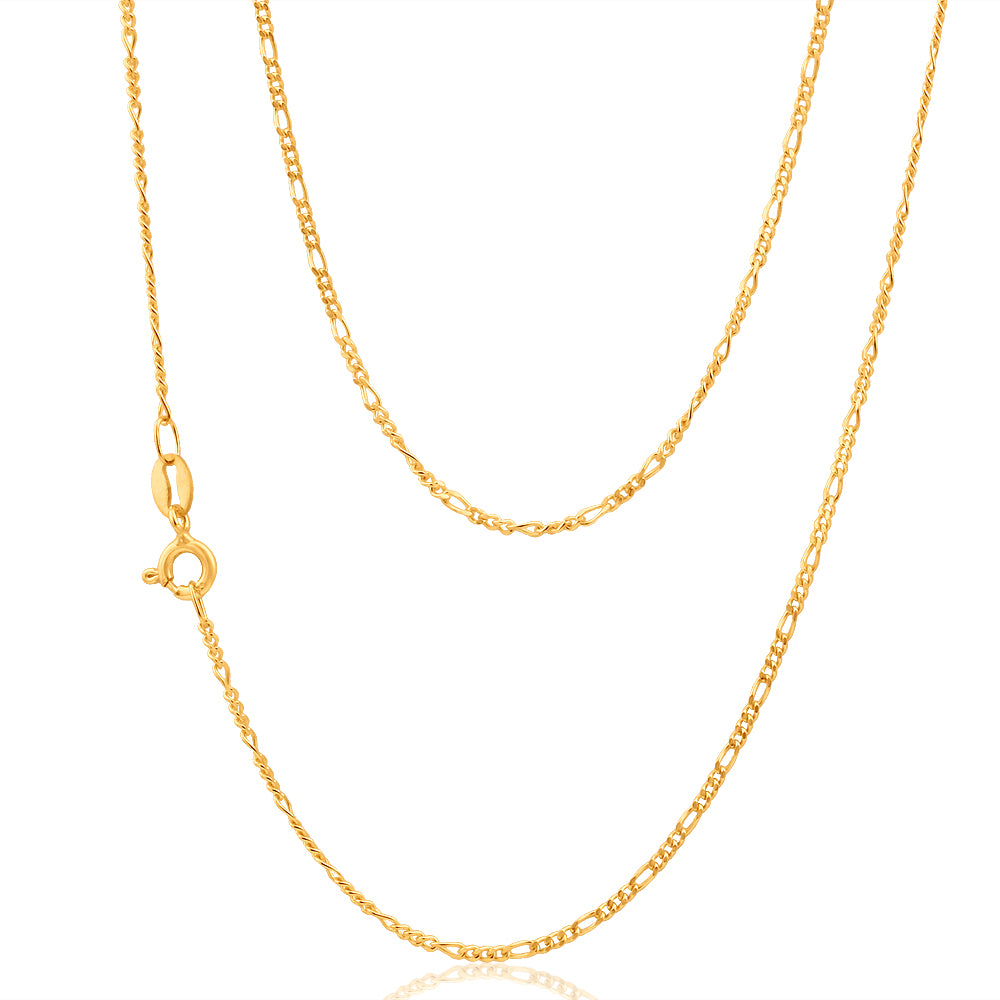 This stunning 9ct Yellow Gold Figaro 1:3 Dicut 40Gauge 50cm Chain is a worthy addition to any collection. Either wear a pendant on it or keep it minimal, it's versatile enough to adapt. Figaro chains combine intricate details with modern clean lines which makes them perfect for all occasions.