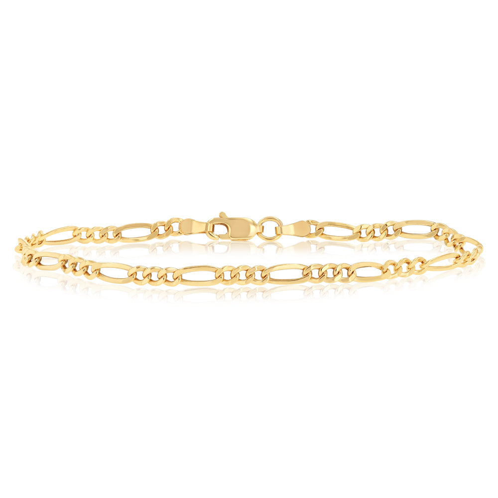 9ct Yellow Gold Figaro Hollow 19cm Bracelet 80Gauge
