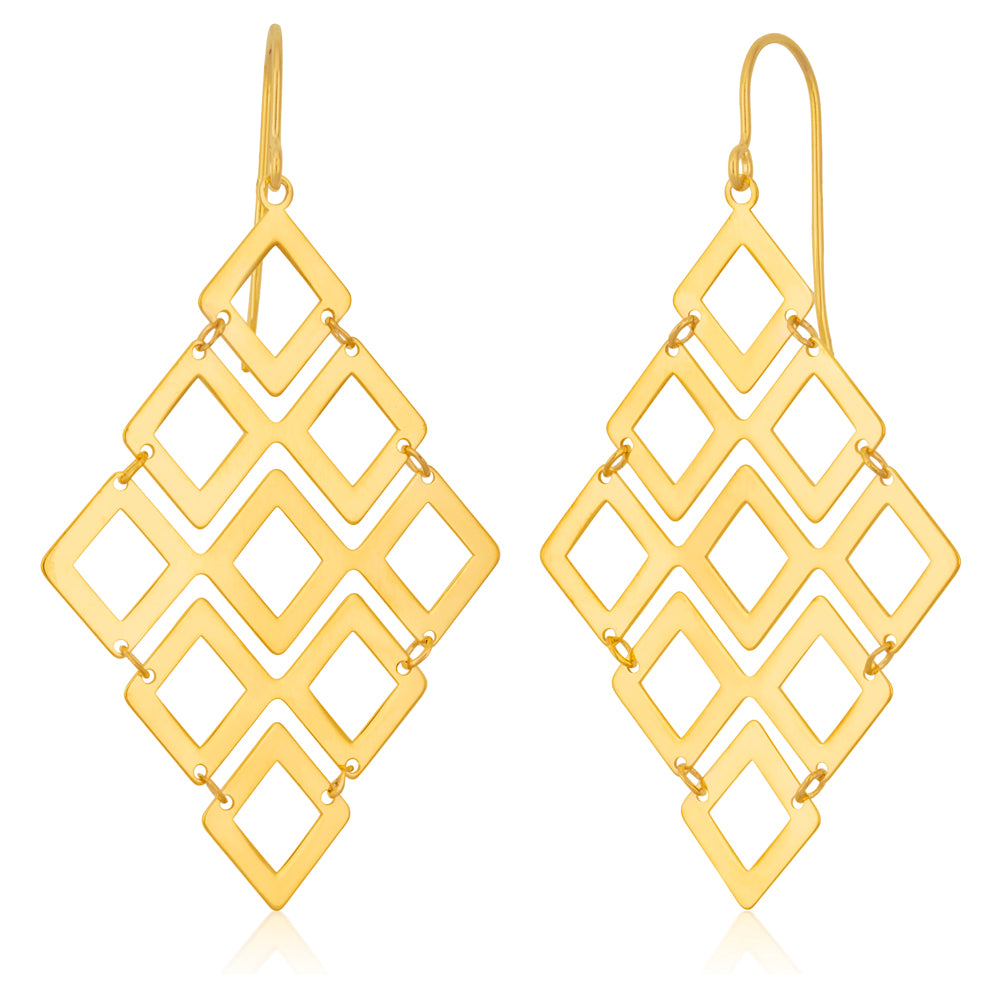 9ct Yellow Gold Filled Diamond Shape Chandelier Drop Earrings
