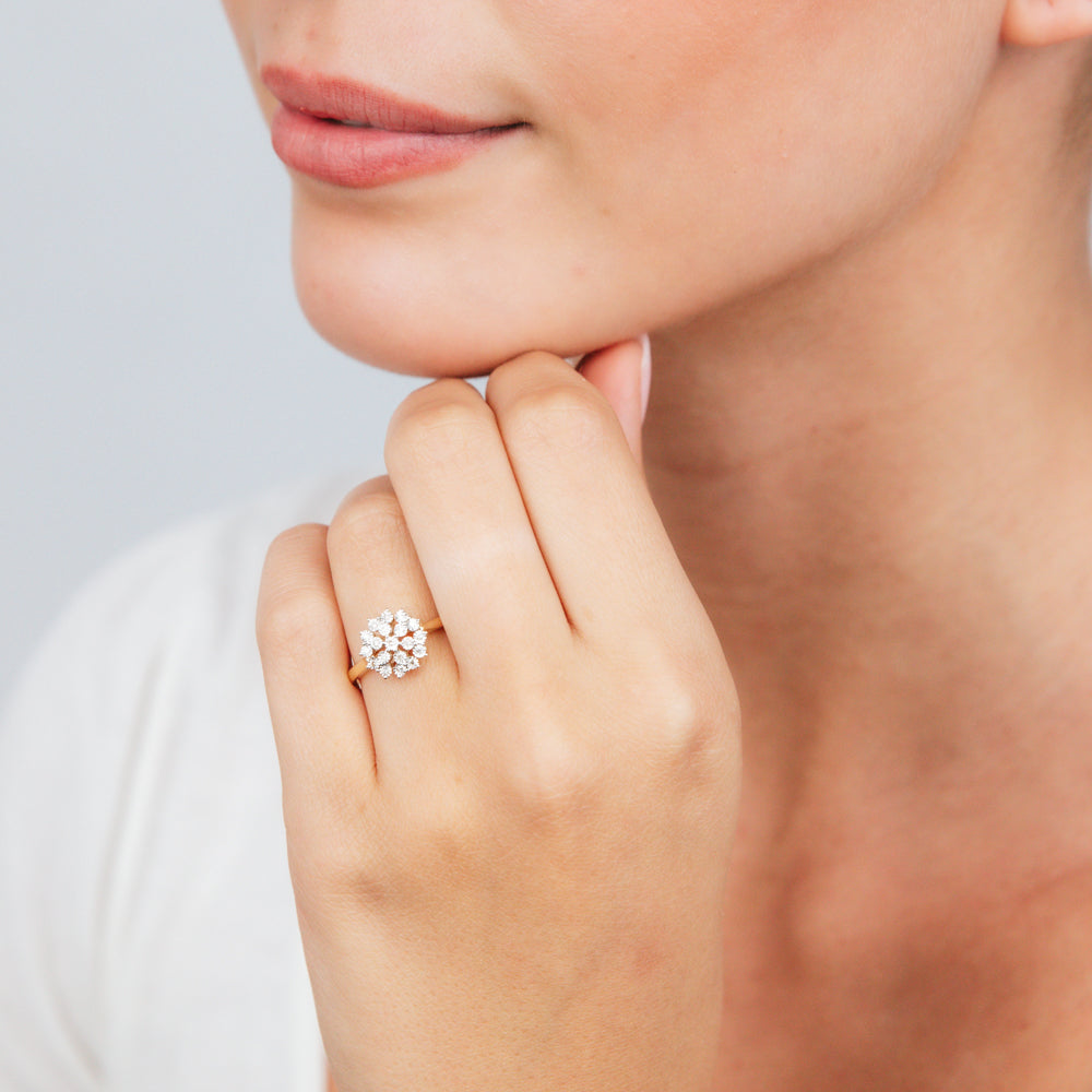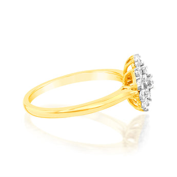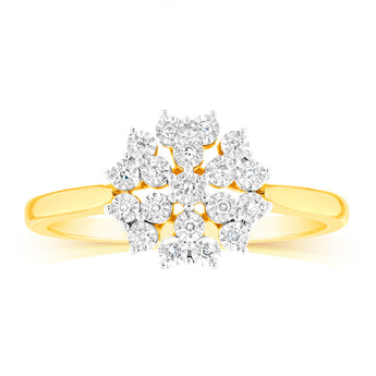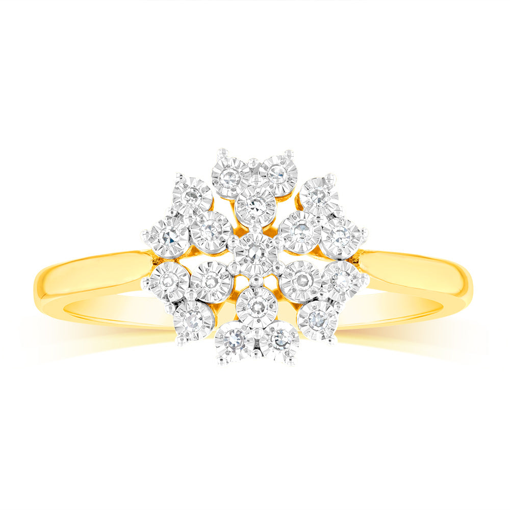 9ct Yellow Gold Flower Shaped Ring in 05 Points Natural Diamonds