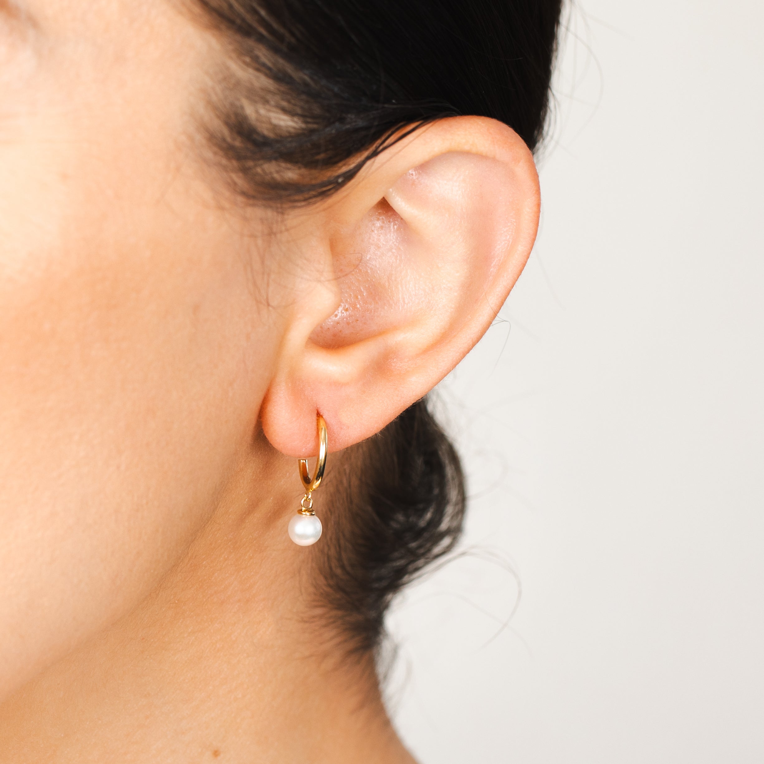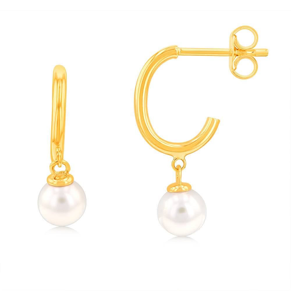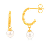 9ct Yellow Gold Fresh Water Pearl On 3/4th Hoop Earrings