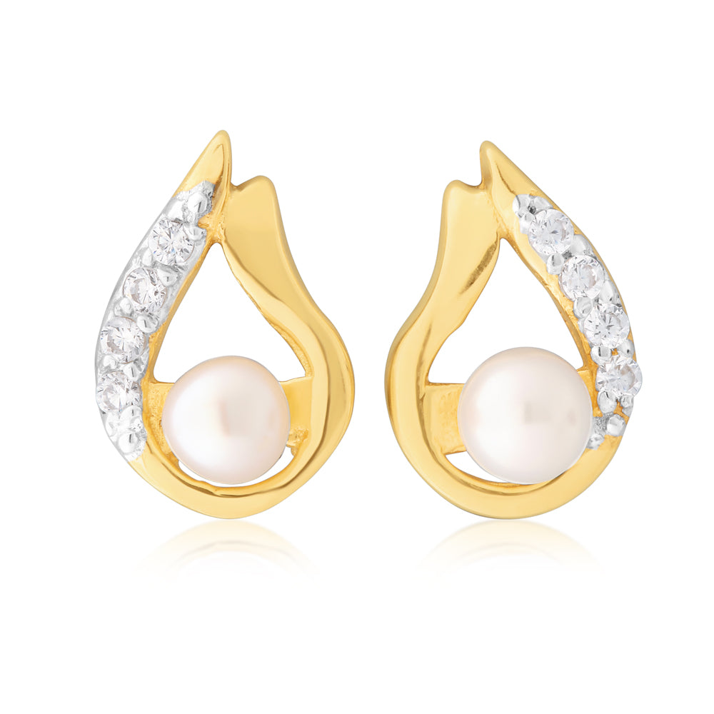 9ct Yellow Gold Freshwater Pearl 3.5-4mm & Zirconia Studs