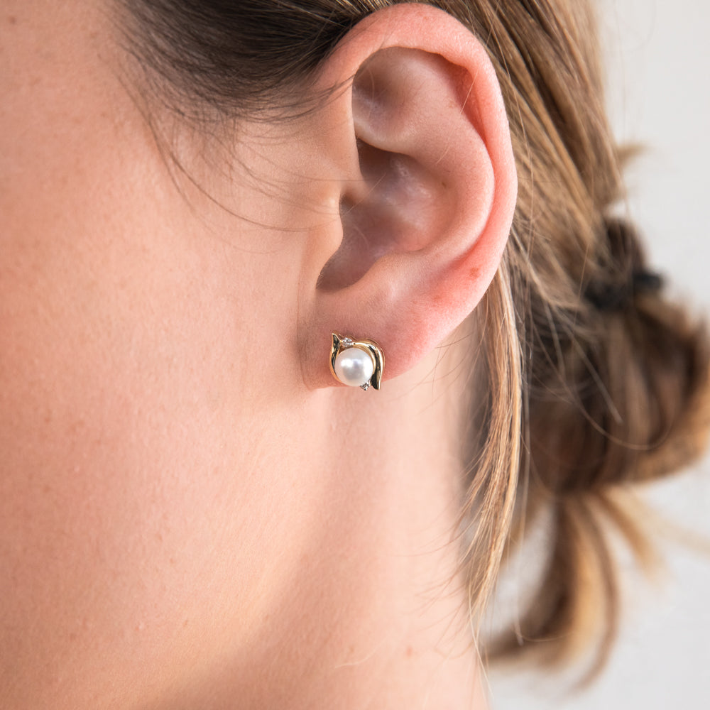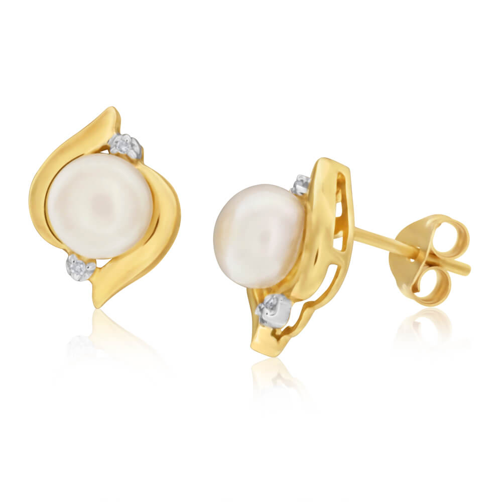 9ct Yellow Gold Freshwater Pearl and Diamond Stud Earrings