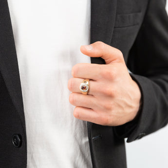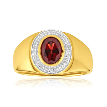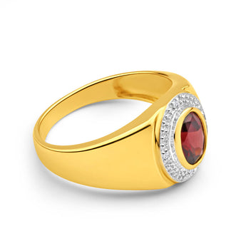 9ct Yellow Gold Garnet and Diamond Gents Ring