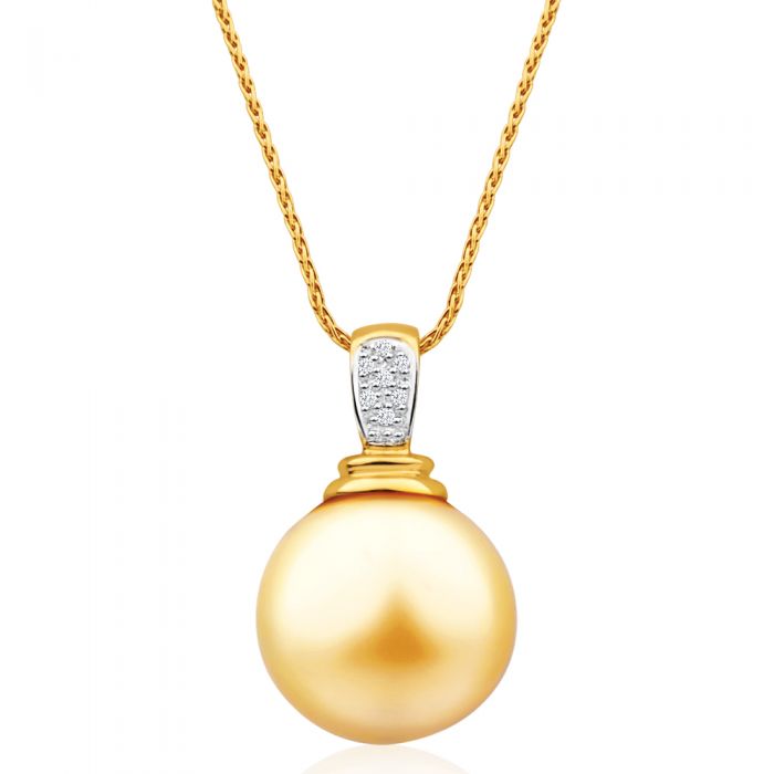 9ct Yellow Gold Golden South Sea Pearl & Diamond Pendant