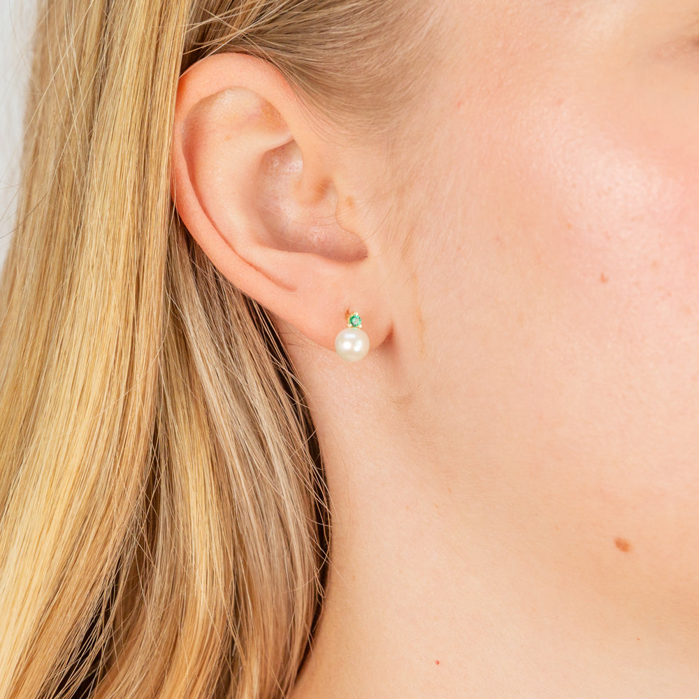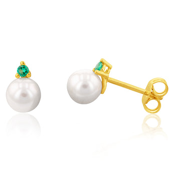 9ct Yellow Gold Green Cubic Zirconia Pearl Stud Earrings