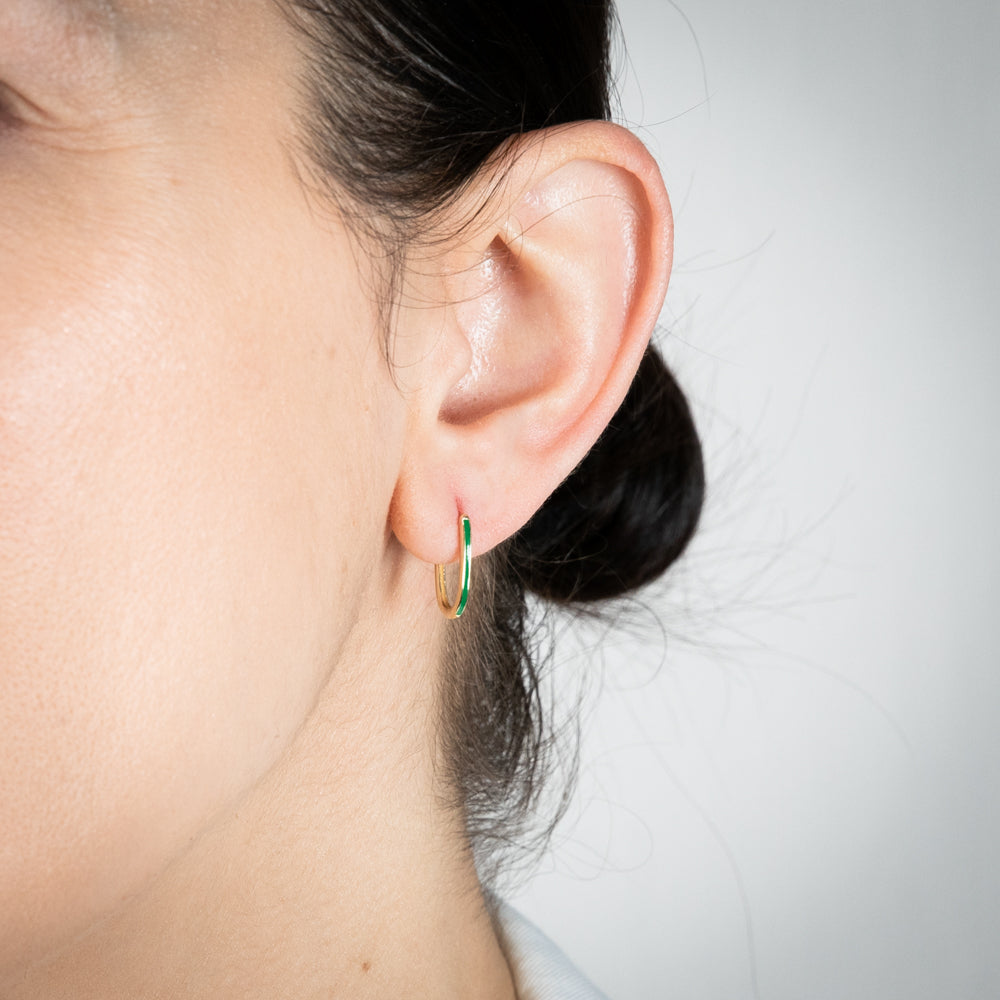 9ct Yellow Gold Green Enamel Hoop Earrings