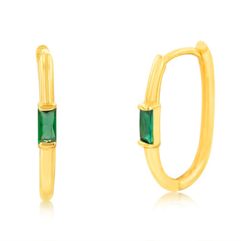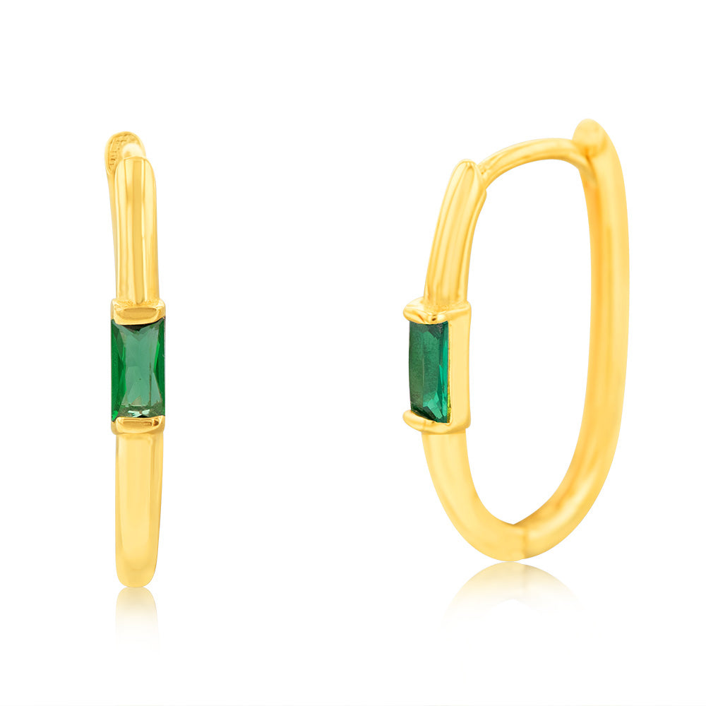 9ct Yellow Gold Green Zirconia Elongated Sleeper Earrings