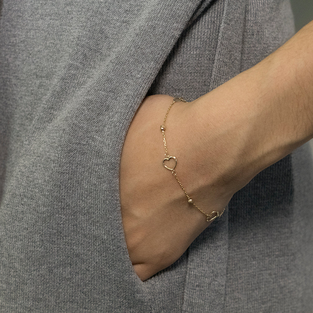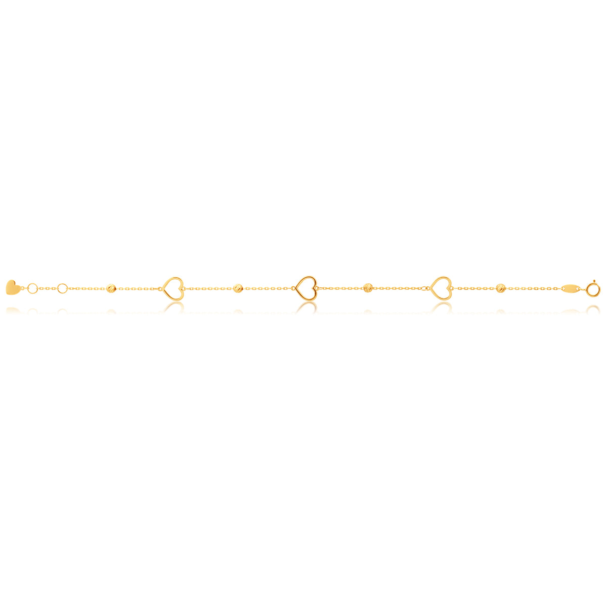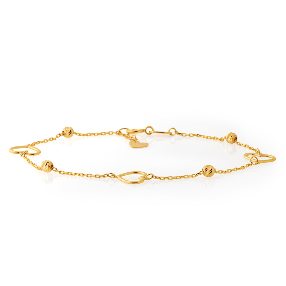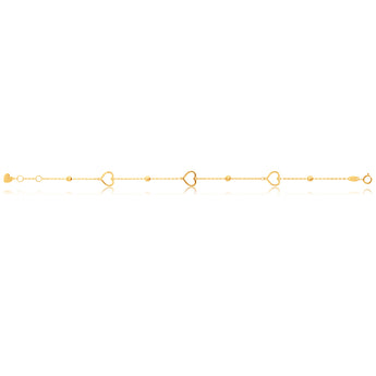 9ct Yellow Gold Heart and Bead 19cm Bracelet