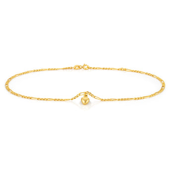 9ct Yellow Gold Heart Charm 3:1 Figaro 29cm Anklet