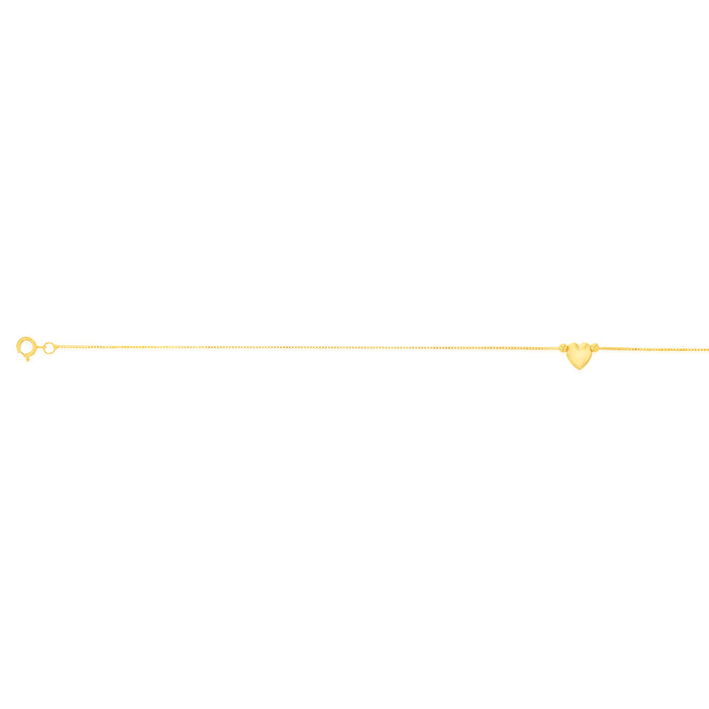 9ct Yellow Gold Heart Charm Box Chain Anklet of 24cm
