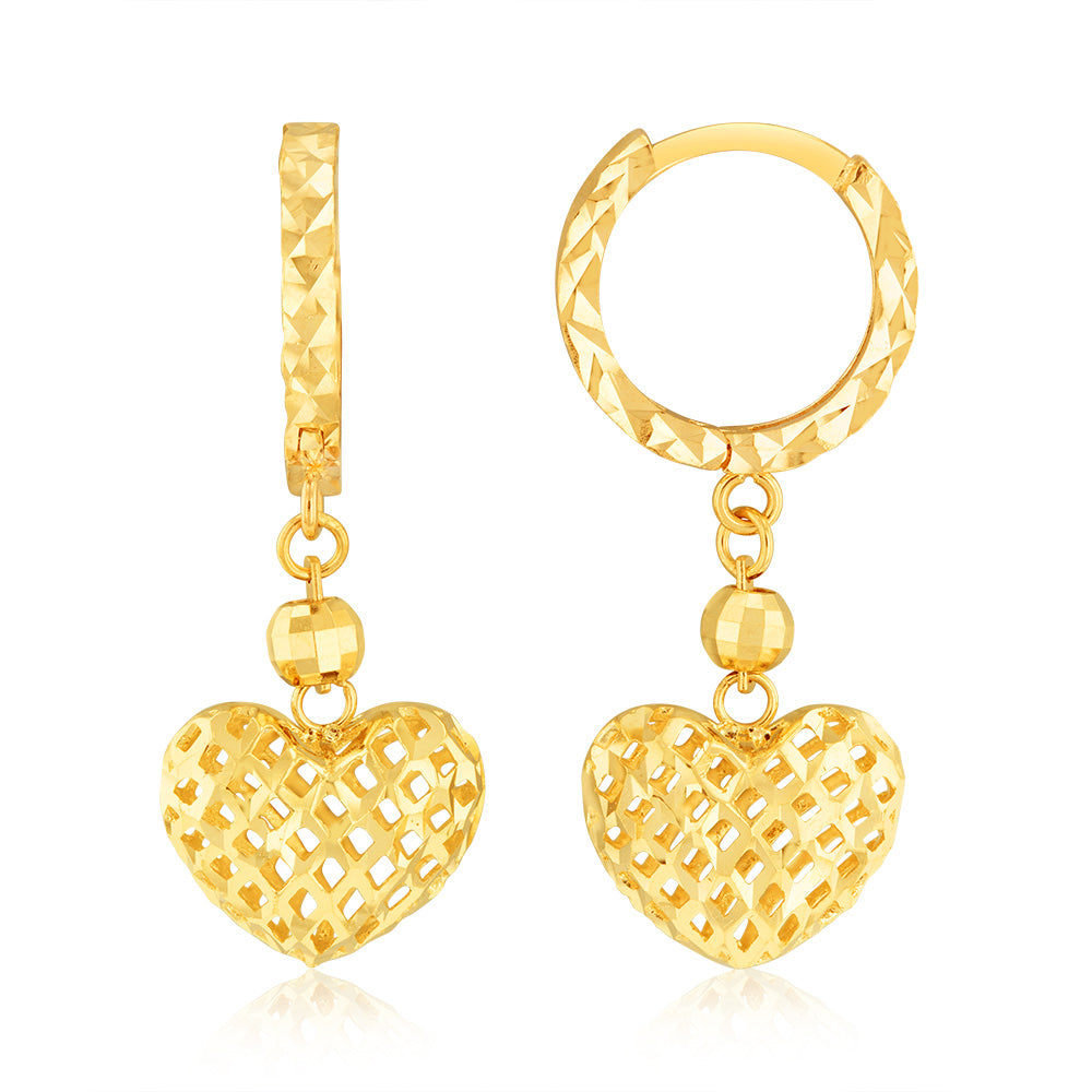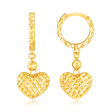 9ct Yellow Gold Heart Charm on Hoop Earrings