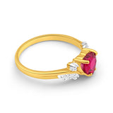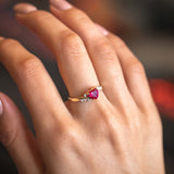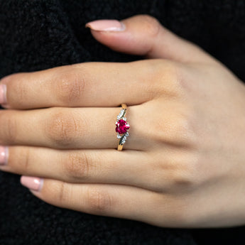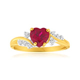 9ct Yellow Gold Heart Created Ruby + Diamond Ring