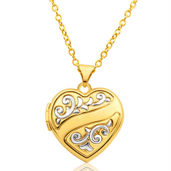9ct Yellow Gold Heart Shaped Locket with Floral Design