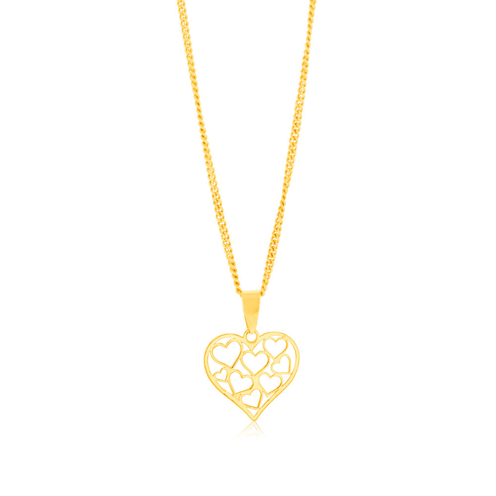9ct Yellow Gold Heart With Cut Out Hearts Pendant