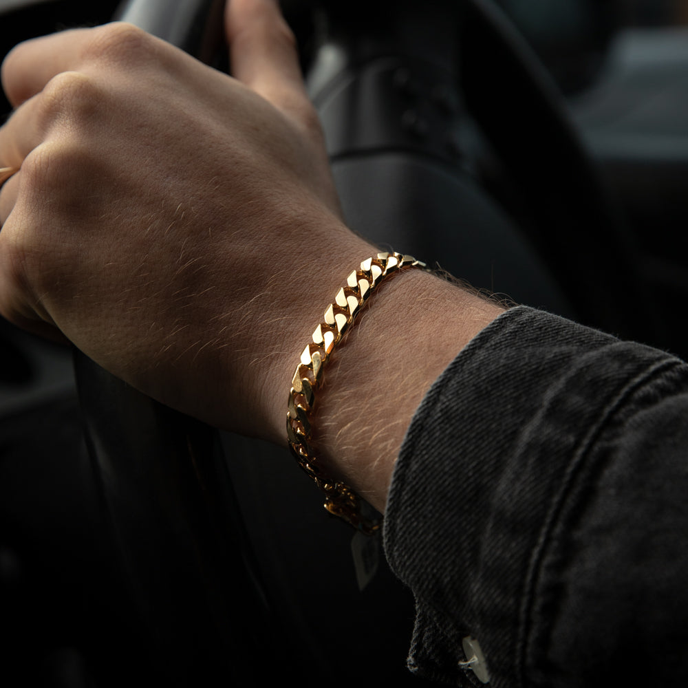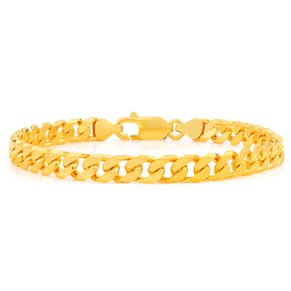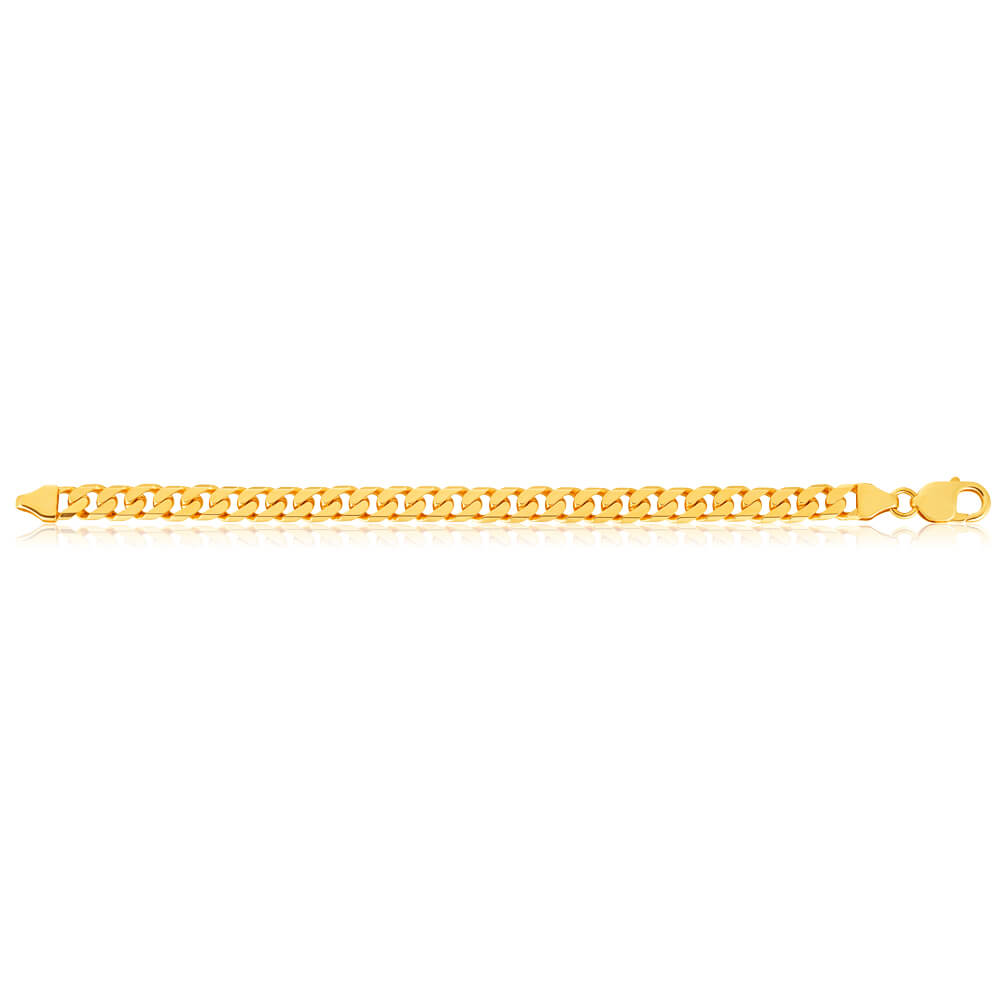 9ct Yellow Solid Gold Heavy Curb Flat Tight Bevelled 21cm Bracelet 250gauge