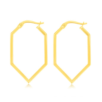 9ct Yellow Gold Hexagonal Hoop Earrings