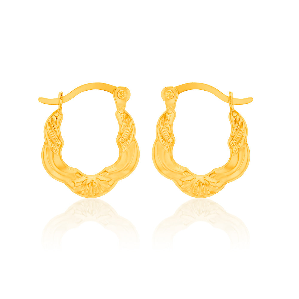 9ct Yellow Gold High Polish Fancy Hoop Earrings